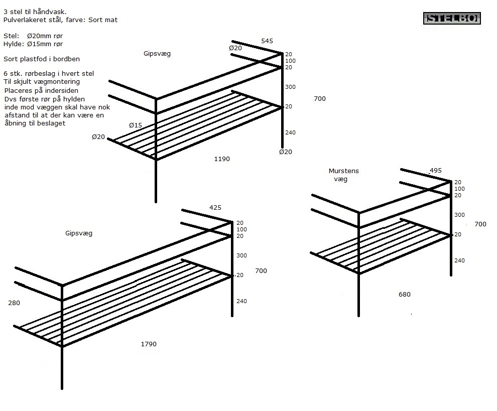 20220320 Stel til vaske, 3 stk. sortlakeret