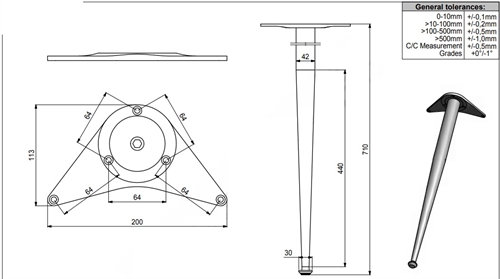 Bordbenet kan justeres ca. 20mm i højden ved at dreje stilleskoen i plast nederst på bordbenet.