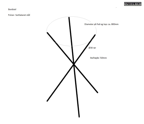 20160704 Specialfremstillet bordstel. Trebenet. Sortlakeret stål. H:72cm, Ø80cm, af Ø30rør. ex fragtSPECIALTILBUD1.800,00 DKK