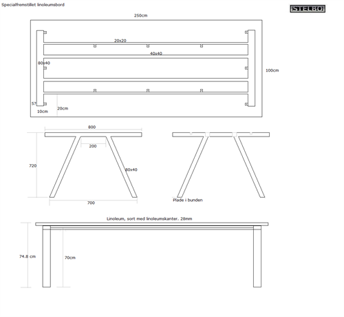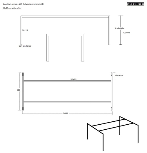 20160621 Specialfremstillet bordstel. 2400x900x700, model 407, sortlakeret, ex fragtSPECIALTILBUD2.900,00 DKK