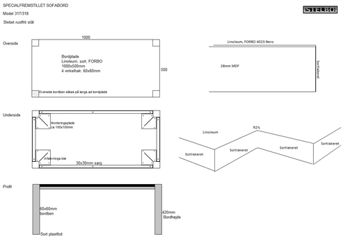 20190128 Specialfremstillet Linoleum-sofabord Model 317/318 - 1000x500x420mmSPECIALTILBUD8.500,00 DKK