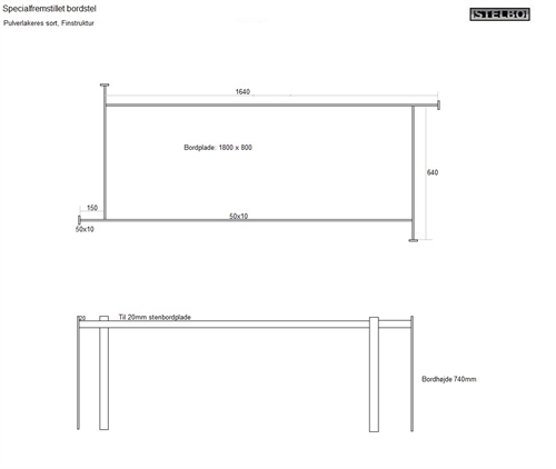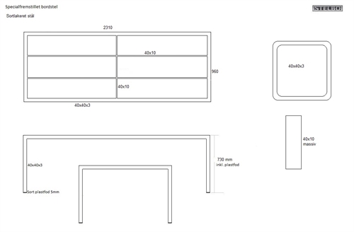 20190115 Specialfremstillet bordstel. Sortlakeret stålstel med bordplade 330x105cmSPECIALTILBUD11.400,00 DKK