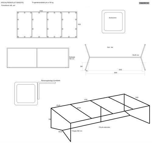 20181029 Specialfremstillet bordstel i pulverlakeret stål. STELBO407 variantSPECIALTILBUD3.650,00 DKK