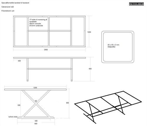20190403Specialfremstillet bordstel. Galvaniseret og pulverlakeret stål, sort. SPECIALTILBUD6.200,00 DKK