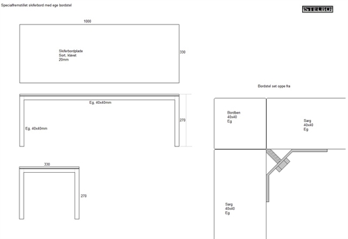 20190503 Specialfremstillet Sofabord. Egetræ med skiferbordplade 100x33x27cmSPECIALTILBUD12.498,75 DKK