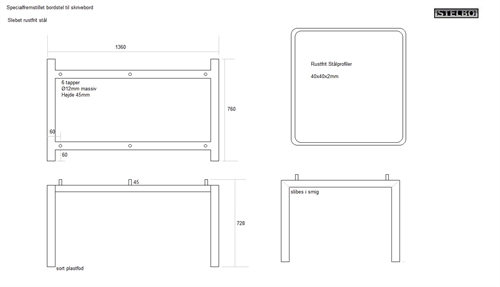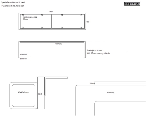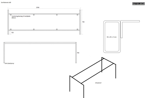 20190507 Specialfremstillet bordstel, sort pulverlakeret. STELBO407: 239X79cm. Inkl. fragtSPECIALTILBUD3.950,00 DKK