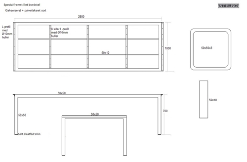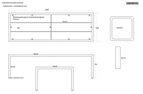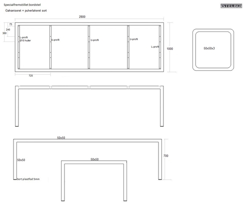 20190516 Specialfremstillet bordstel, sort pulverlakeret, 2800x1000mm, til egeplankerSPECIALTILBUD7.200,00 DKK