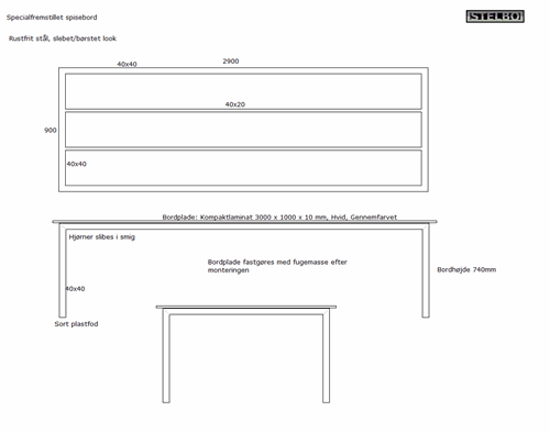 20210215 Specialfremstillet spisebord. Rustfrit stålstel med hvidt kompaktlaminatSPECIALTILBUD11.100,00 DKK