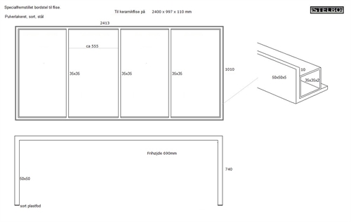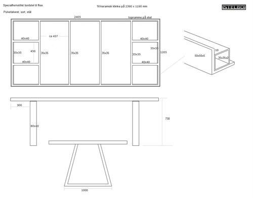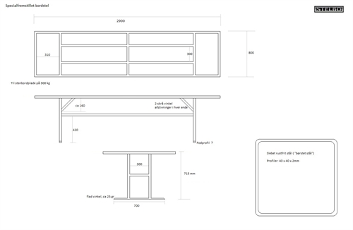 20210628 Specialfremstillet sofabord i rustfrit stål med skiferbordplade. 125x75x50cm. STELBO314SPECIALTILBUD16.650,00 DKK