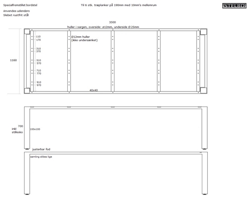 20210923 Specialfremstillet bordstel i rustfrit stål