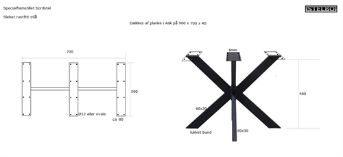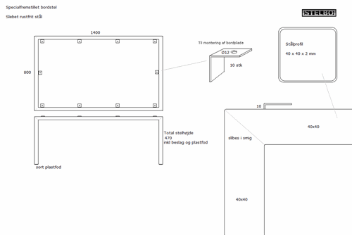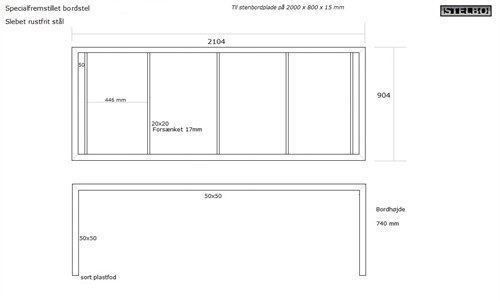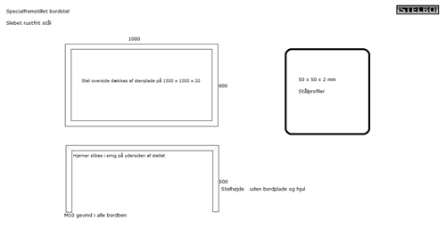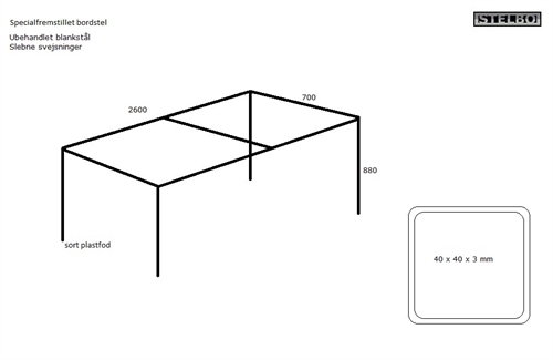 20220213 Specialfremstillet bordstel i rustfrit stål. STELBO413