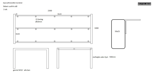 20211110 Specialfremstillet bordstel i rustfrit stål, 3 stk.