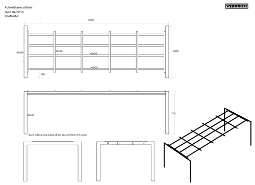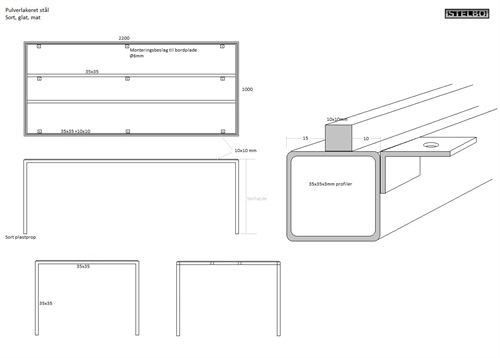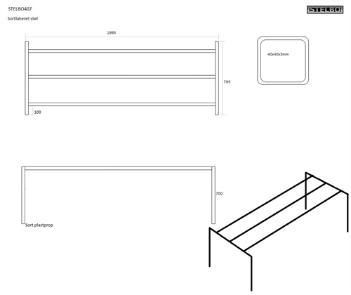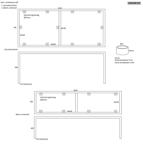 20170403 Specialfremstillet bordstel. Pulverlakeret sort. 2960x1160x710mm, 60x30SPECIALTILBUD3.200,00 DKK
