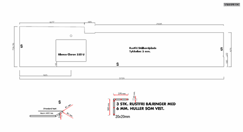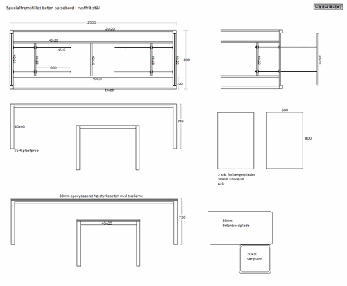 20170313 Specialfremstillet betonbord i rustfrit stål med 2 forlængerplader i linoleumSPECIALTILBUD19.900,00 DKK