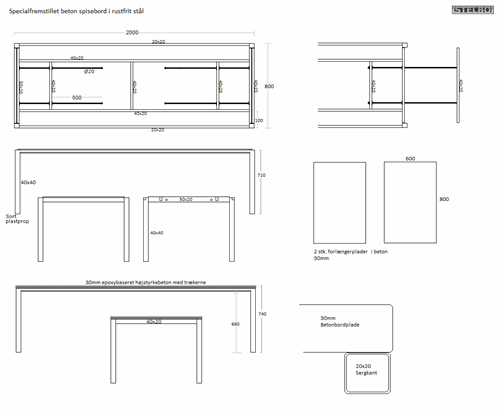 20170321 Specialfremstillet betonbord i rustfrit stål med 2 forlængerplader i betonSPECIALTILBUD23.900,00 DKK