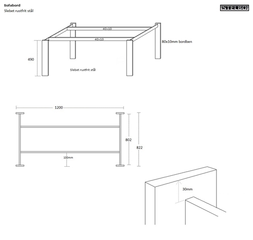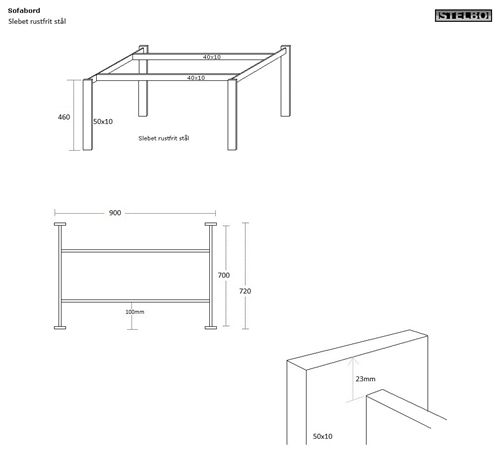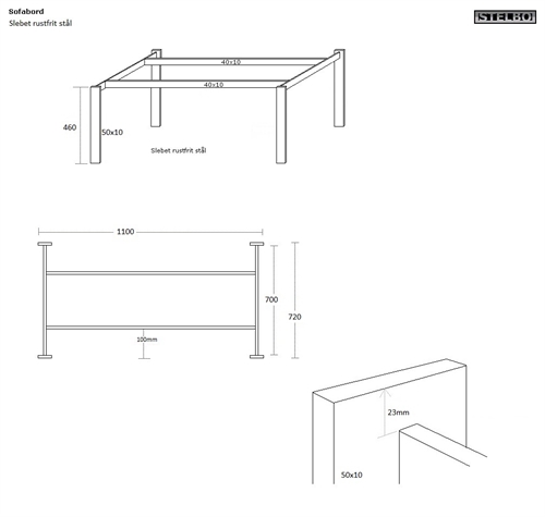 20170424 Specialfremstillet bordstel. 100x100x47cm, 40x40mm blankpoleret rustfrit stålSPECIALTILBUD7.200,00 DKK
