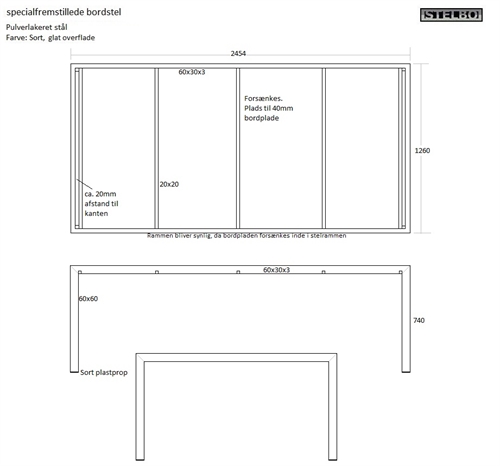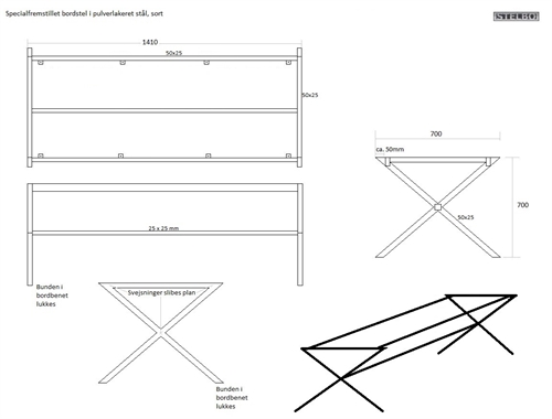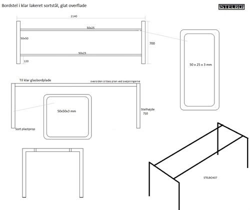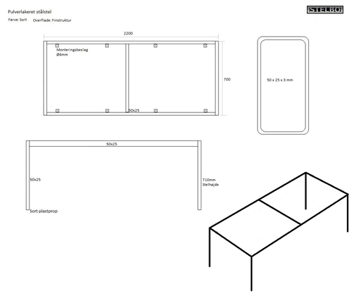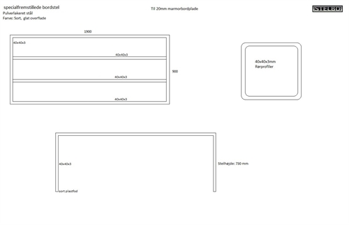 20171116 Specialfremstillet bordstel i pulverlakeret sortstål, 190x90x73cm i 40x40mm stålSPECIALTILBUD3.900,00 DKK