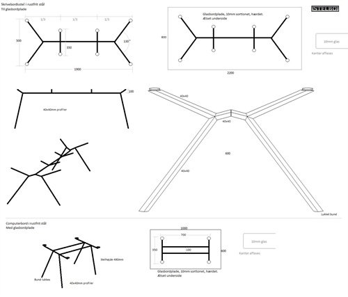 20171016 Specialfremstillet Skrivebord og Computerbord. Rustfrit stål og glasbordpladerSPECIALTILBUD24.750,00 DKK