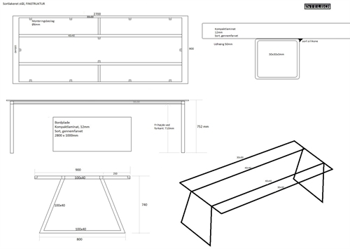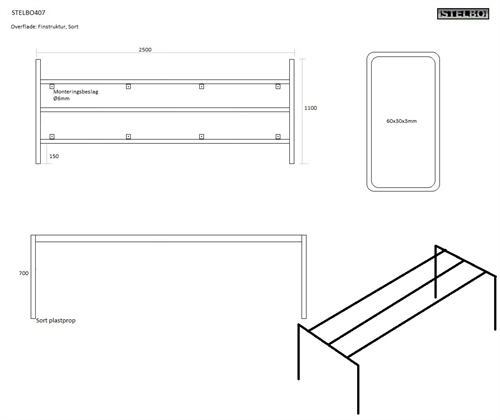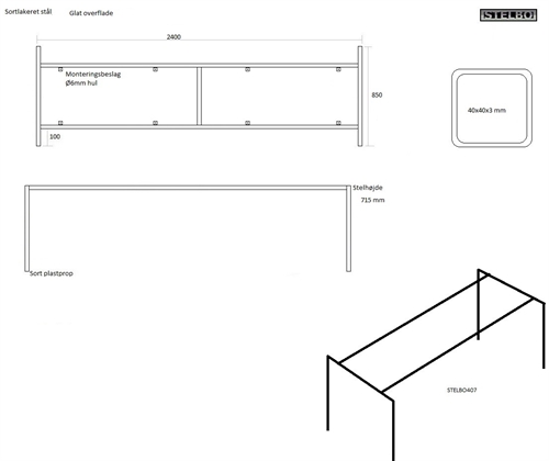 20171006 Specialfremstillet bordstel. STELBO407, 2995x995x700mm, SortlakeretSPECIALTILBUD4.500,00 DKK