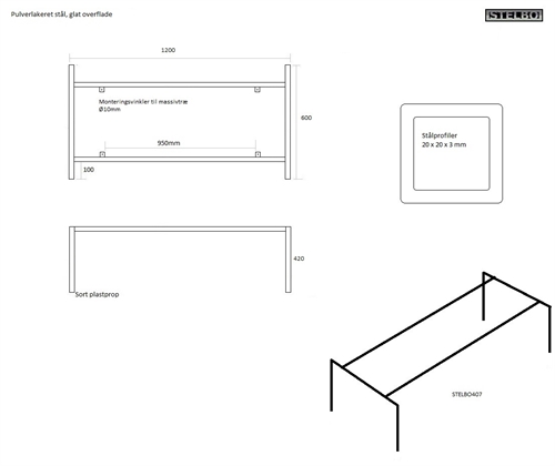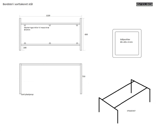 20171025 Specialfremstillet bordstel i pulverlakeret sortstål, STELBO407: 120x60cmSPECIALTILBUD2.500,00 DKK