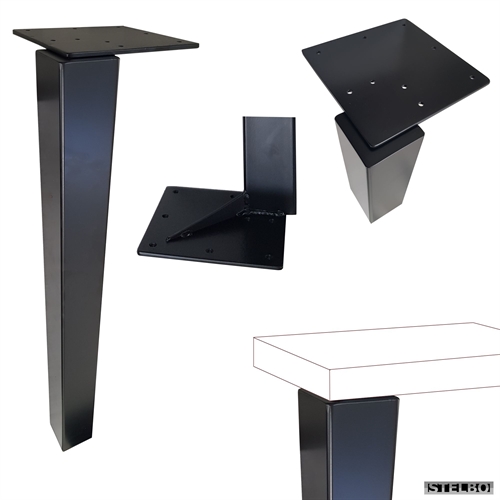 4 stk. bordben. 70-72cm, Skrå, Sortlakeret stål