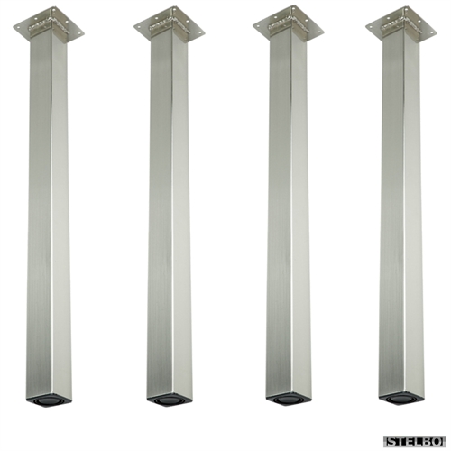 4 stk. bordben. 92-95cm, 60x60mm, Børstet stål