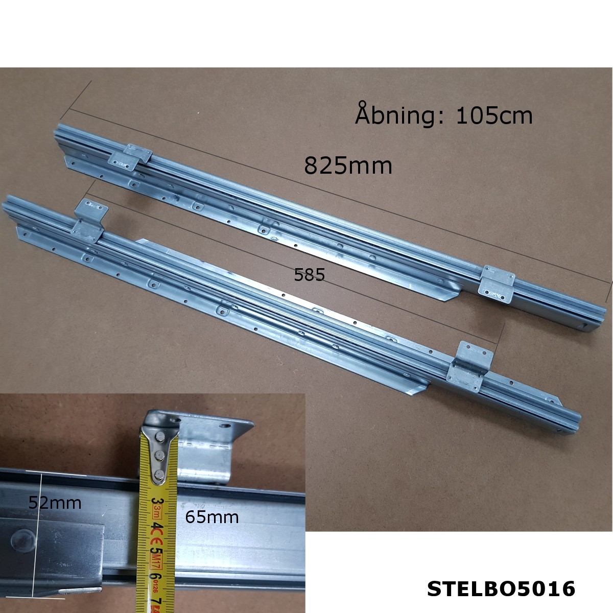 Åbningsmål: 1050mm (fx 2 forlængerplader på 50cm)