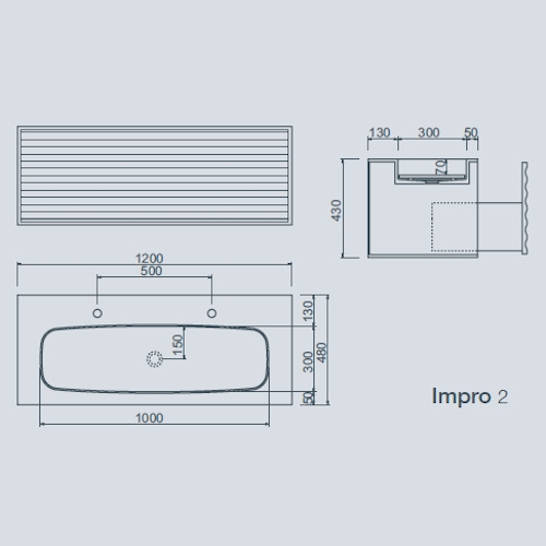 Corian skab og vask. 1200 x 480 x 430mm Vægmodel. 3 farvemuligheder