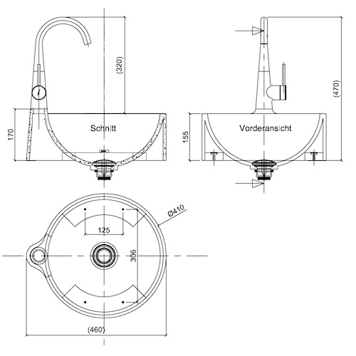Corian vask inkl. bl. batteri. Ø410 x 170mm. Bordmodel