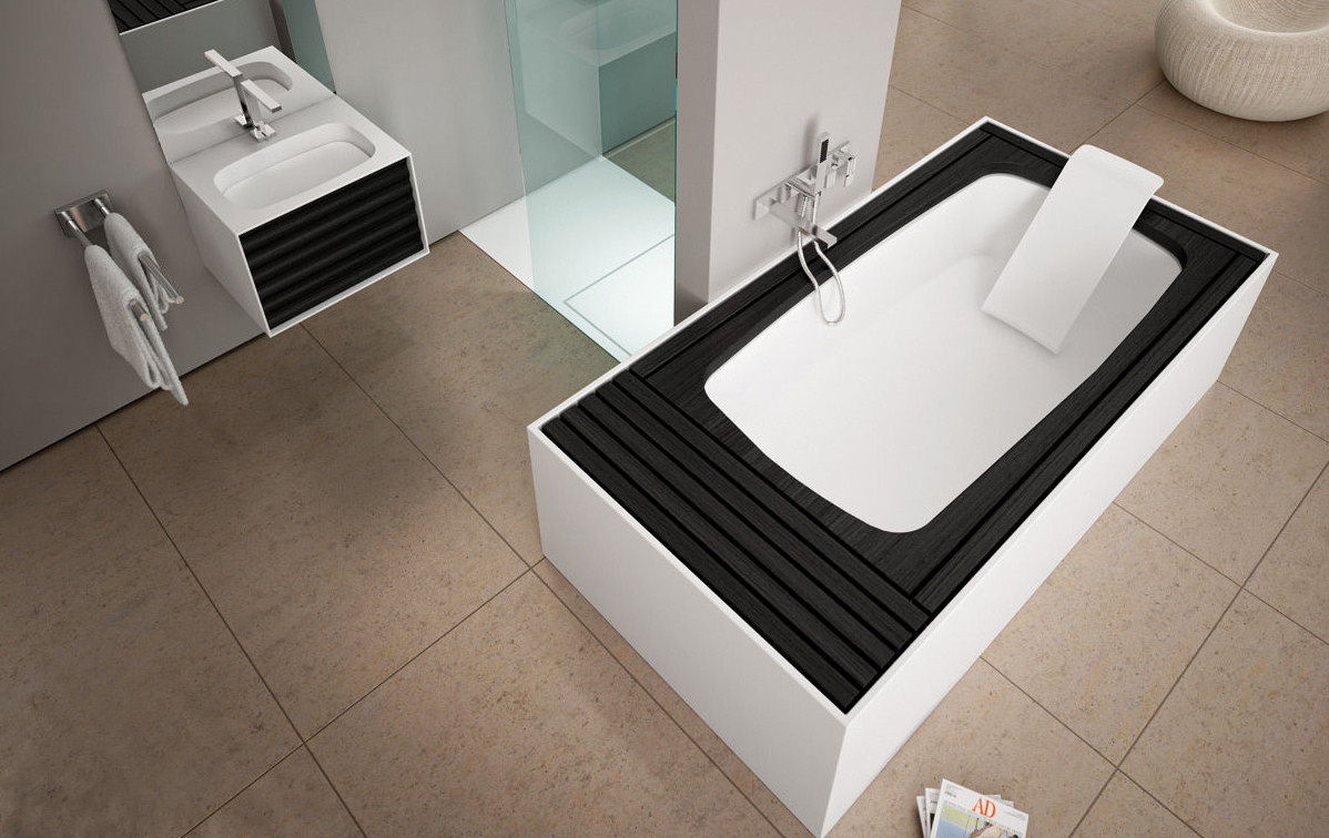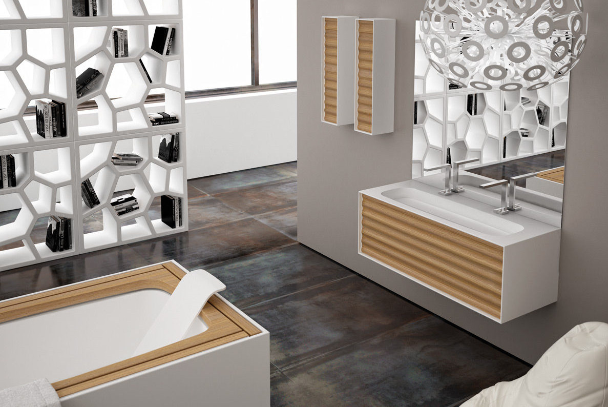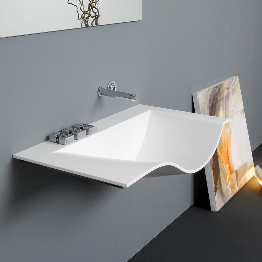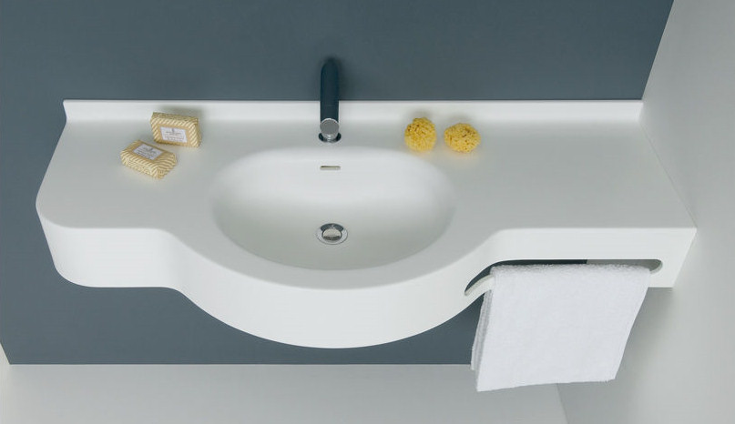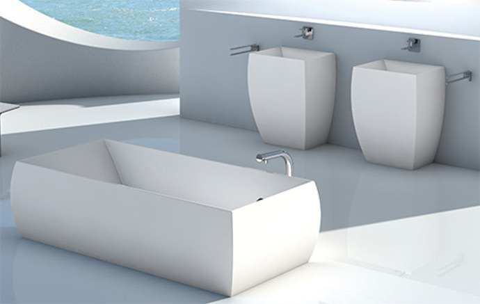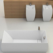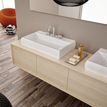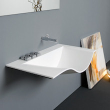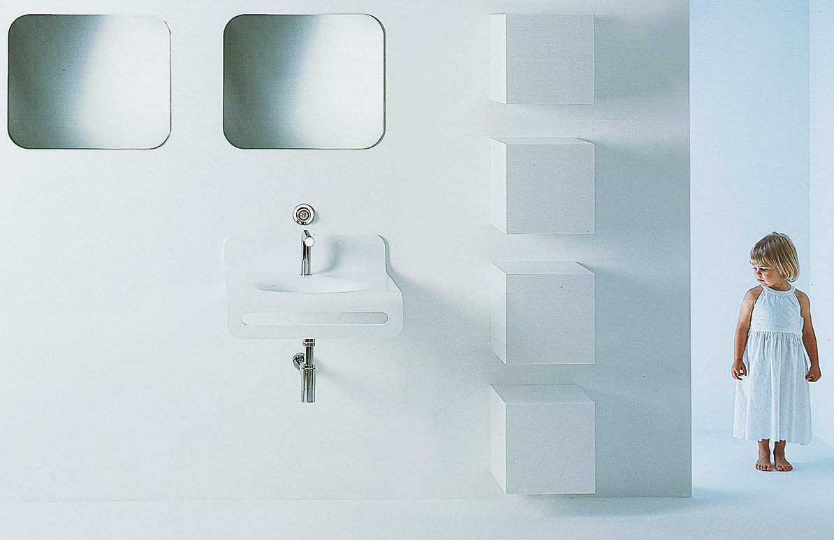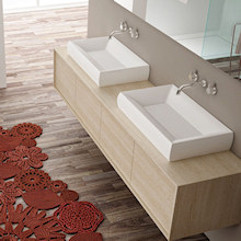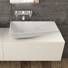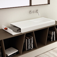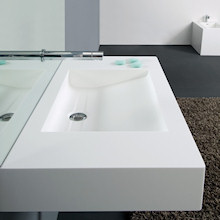 Corian design vaske fra Italien  Sharp vask i speciallavet corianbordplade |  Planivit |  Duna 6 vaske og badekar |  Wave 4 |  Impro 2, Vask inkl. skab med mulighed for forskellige farver. Væghængte skabe + badekar i samme stil |  Duna 5 vaske og badekar i samme stil |  Wave 1 |  Impro 1 inkl. skab med skuffe. Badekar i samme stil | |