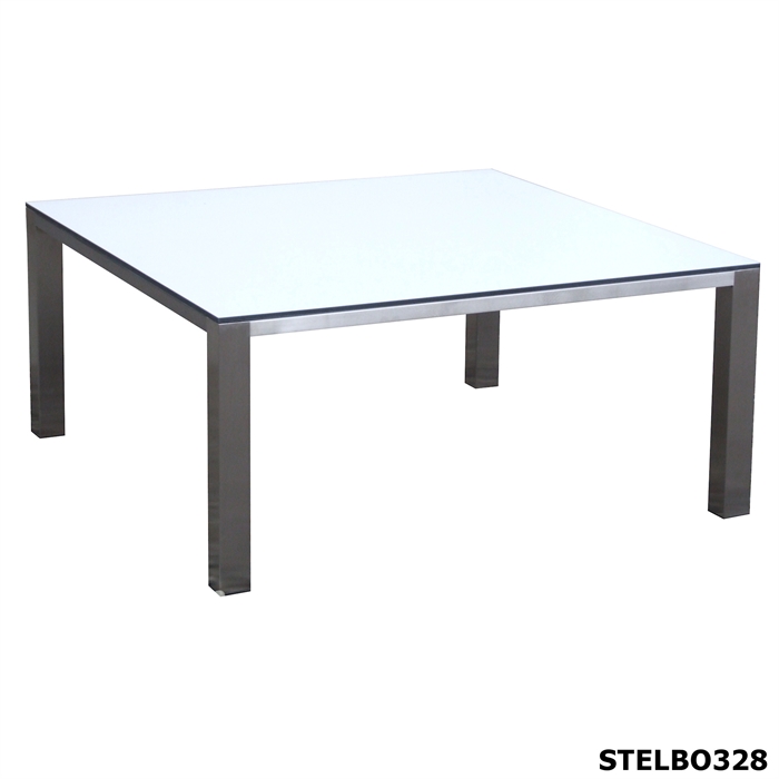 Bordstel: 60x60mm ben og 30x30mm sarg i slebet rustfrit stål