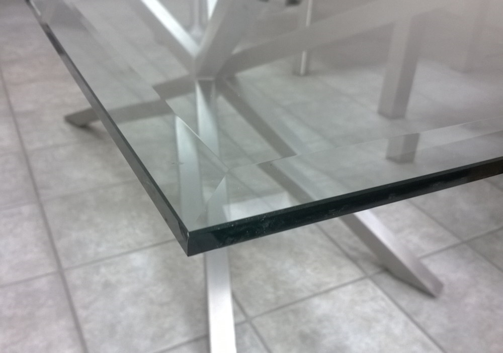 SOLGT - Glasbord med bordstel i børstet rustfrit stål 2x1m